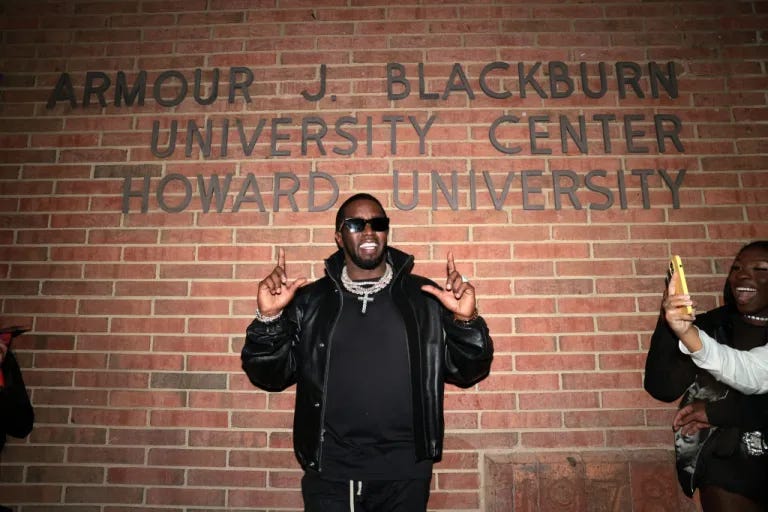 Following his graduation from Mount St. Michael Academy, Combs enrolled at the prestigious Howard University in Washington, DC to study business in 1987. He promptly set about further inflating his street cred as he expanded his horizons into a new popularity-maximizing enterprise –– party planning and promotion. His parties were described by classmates as offering a “once-in-a-lifetime type of vibe” and Combs spared no expense in spreading the word, driving around campus in his convertible to pass out fliers for events. Author Susan Traugh wrote that some of Combs’ collegiate parties attracted thousands of guests.
